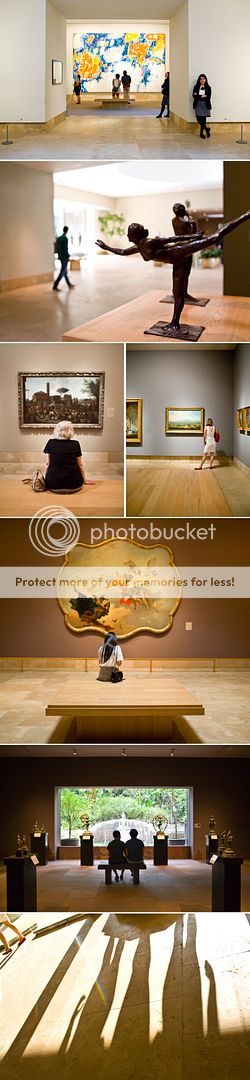 Today we swung by the Norton Simon Museum in Pasadena to look at a few exhibits. The weather was pretty nice and we sat out in the garden for a little while between exhibit hopping. I also bought a Sunprint kit in the gift shop and am quite excited to take it for a spin. One of my favorite things to do in museums is to watch people experiencing the art. I'd been to the Norton Simon several times so I was already familiar with their permanent collection which meant I could spend more time people watching! There's something so quiet, reflective, and personal about photographing people while they're studying a painting (or just relaxing in front of one). Rather than disturb them I like to photograph them with their backs to me. It's interesting to see how posture and body language change depending on the piece of art. The way a person holds themselves in these moments tells me a lot about them and I'm fine to leave the rest a mystery. Stay tuned for a second post from the Norton Simon. I'll be showing some images of the shadows cast by Hindu statues!